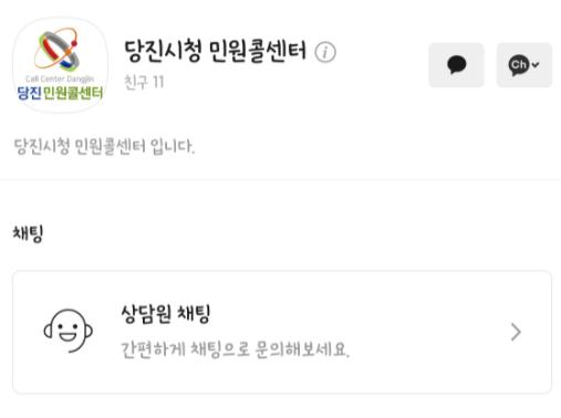 한편 당진시 민원콜센터는 작년도에만 총 11만9815건을 상담하며 시민과의 소통창구로써의 역할을 톡톡히 하고 있으며, 카카오톡 채팅 상담 서비스는 업무시간(오전 9시~오후 6시)에 실시간으로 운영되며, 카카오톡 채널 검색에서 ‘당진시청 민원콜센터’를 검색하고 채널을 추가를 하면 서비스를 사용할 수 있다.