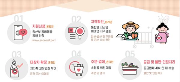 이후 사업대상 임산부는 통합 몰을 통해 꾸러미를 직접 구매하면 되고, 연간 48만원(지원 38만 4000원, 자부담 9만 6000원) 상당의 친환경농산물을 각 가정까지 배송 받을 수 있다.