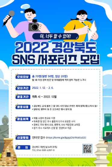 경상북도가 이달 12일부터 내달 6일까지 지역을 홍보할 공식 SNS 서포터즈를 모집한다고 밝혔다.
