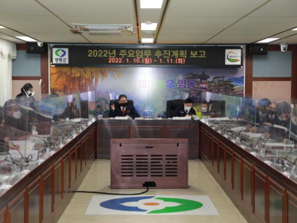 군은 지난 10일부터 11일까지 군청 상황실에서 각 부서별로 주요 현안사업의 중단없는 추진과 체계적 전략 목표 설정을 위한 2022 주요업무 추진계획 보고회를 가졌다.