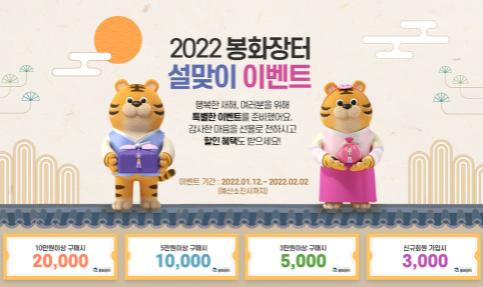 경북 봉화군 농?특산물 온라인쇼핑몰 ‘봉화장터’는 2022년 설명절을 맞이해 1월 12일부터 2월 2일까지 지역의 우수한 농?특산물을 저렴한 가격에 구입할 수 있는 ‘설맞이 쿠폰 이벤트’를 진행한다.