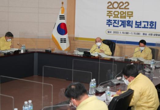 광양시는 1월 10~11일(2일간) 시청 상황실에서 ‘2022년 주요업무 시행계획 보고회’를 열고, 올해 주요업무 시행계획과 역점사업, 부진사업 등에 대해 집중 분석하는 시간을 가졌다.