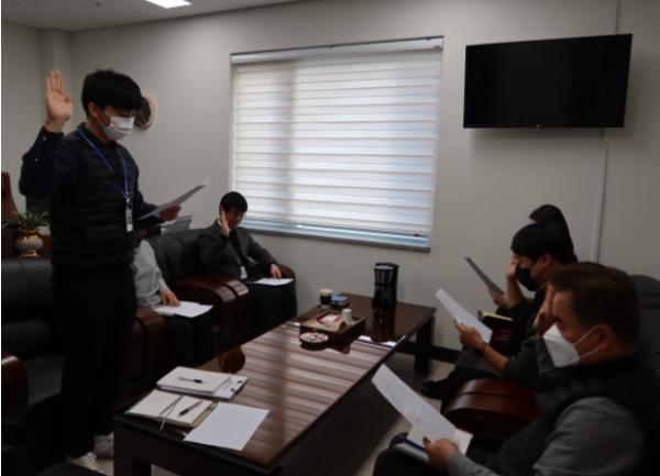 사회복지법인 대한불교천태종복지재단에서 영양군으로부터 위탁 운영하는 영양군노인복지관은 지난 10일, 새해를 맞아 복지관을 운영함에 있어 직원들의 새로운 다짐을 위해 윤리경영이념 실천, 이용자 학대 금지 및 이용자 인권보장에 대한 서약식을 가졌다.