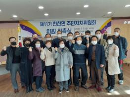 천천면 주민자치위원회는 주민 편의와 복리 증진을 도모하고 주민자치프로그램 운영과 자치활동에 필요한 사항을 심의·의결하는 주민대표 기구로, 올해 구성된 제11기 위원회 20명의 위원은 2023년 12월 31일까지 활동할 예정이다.