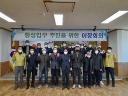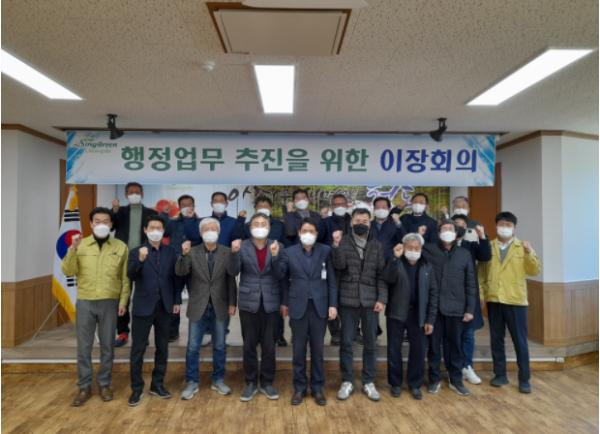 이날 회의에는 신임 이장에 대한 임명장 수여와 2022년 새해 각종 지원사업 및 제도 개편 등 군정 및 면정 주요 추진사항을 전달하고, 신임 이장에 대해 임명장을 수여하고 격려했으며 기관단체장 및 이장과 함께 신년 면정 추진 결의를 다짐했다.
