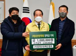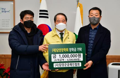 (재)담양장학회는 지난 11일 (사)담양군공예인협회에서 지역인재 육성을 위한 장학금 100만원을 전달했다고 전했다.