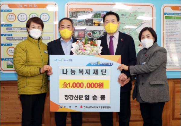 장흥군은 임순종 장강신문 대표가 10일 저소득 어르신을 위해 써달라며 성금 1000만원을 전달했다고 밝혔다.