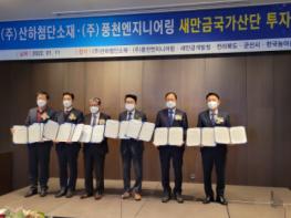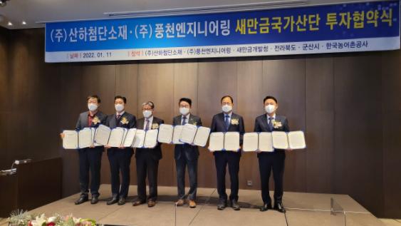 이날 협약식에는 ㈜산하첨단소재 장재영 대표이사, ㈜풍천엔지니어링 이병천 대표이사, 양충모 새만금개발청장, 신원식 전라북도 정무부지사, 강임준 군산시장 등 30여 명이 참석했다.