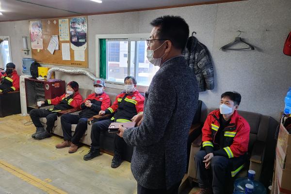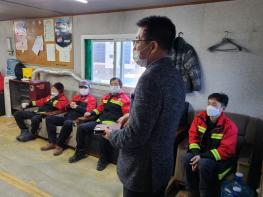 새마을녹지과장은 산불전문예방진화대 대기실에서 진화대원에게 산림과 인접한 곳에 논밭두렁 및 영농폐기물 소각행위 발견시 금지하여 줄 것을 당부하였고, 특히 강풍이 부는 날에는 더욱더 논밭두렁 소각과 같은 행위는 절대 금지 하여줄 것을 당부하였다.