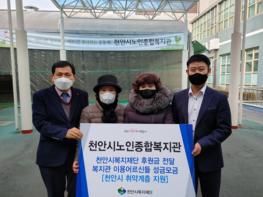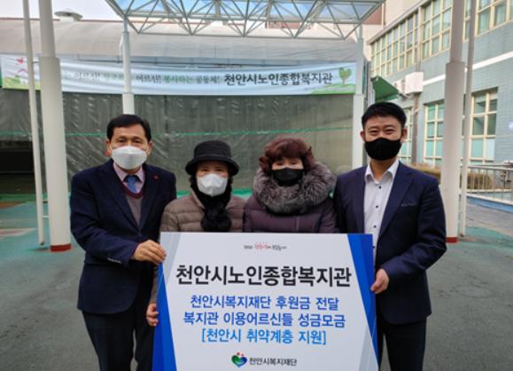 천안시노인종합복지관 은빛봉사단 어르신들이 지난 연말 복지관 관내에서 취약계층을 위한 후원금 모금 활동을 펼쳐 모아진 모금액을 천안시복지재단에 10일 전달했다.