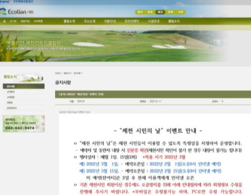 당초 제천 에콜리안골프장에서는 코로나19로 인해 국내 골프장 수요가 증가해 예약이 어려워짐에 따라, 제천시민들의 이용률 향상 및 편의증진을 위해 작년 7월부터 매달 1일마다 관내 주민등록을 두고 있는 시민들을 대상으로 골프장 예약을 할 수 있게 했었다.