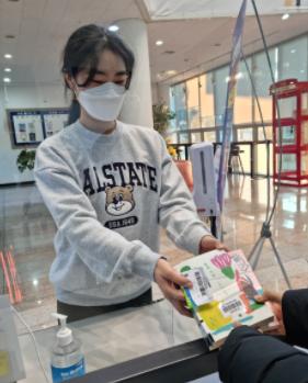 비대면 도서대출창구 이용은 전날 대출 신청한 도서를 다음날 평생학습원 방역 패스 안내데스크에서 정해진 시간에 방문하여 수령하면 된다.
