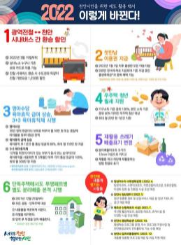 천안시가 새해를 맞아 알아두면 도움 되는 새로운 주요 제도와 시책을 소개했다.