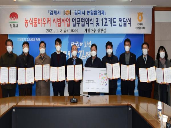 김제시는 농림축산식품부에서 주관하는 2022년 농식품바우처 시범사업 공모사업에 선정되어 국비 10억 9500만원을 확보하는 쾌거를 거두었다.
