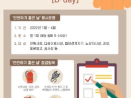 ‘안전하기 좋은 날’은 기존 전통시장 점포점검의 날을 확대해 다중이용시설, 노유자시설, 공장, 물류창고, 공사장 등에서 매월 1회 관계자가 스스로 안전을 점검하고 개선하는 분위기를 조성하고자 마련됐다.