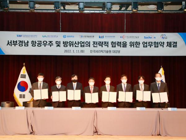 사천시는 지난 11일 한국세라믹 기술원에서 한국항공우주산업(주)을 비롯한 산, 학, 연, 관 7개 기관과 항공우주 및 방위산업 분야를 육성하고 발전시키기 위한 업무협약을 체결했다.