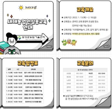 교육은 오는 1월 13일부터 2월 18일까지 실시되며, 15과정에 1,000명을 대상으로 진행된다. 교육 신청 및 교재 수령은 해당 읍·면 농민상담소에서 드라이브스루 방식으로 운영된다.