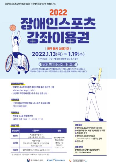 전주시는 오는 13일부터 19일까지 만 19~64세 등록 장애인을 대상으로 ‘2022년도 장애인 스포츠강좌이용권’ 신청을 받는다.