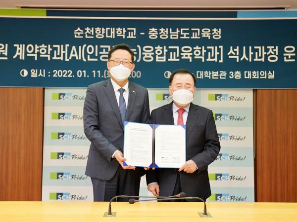 이와 관련하여 충남교육청은 순천향대학교와'AI융합교육 전문인력 양성 석사과정 개설 및 운영 지원'을 위한 업무협약을 11일 14시에 순천향대학교에서 체결했다고 밝혔다.