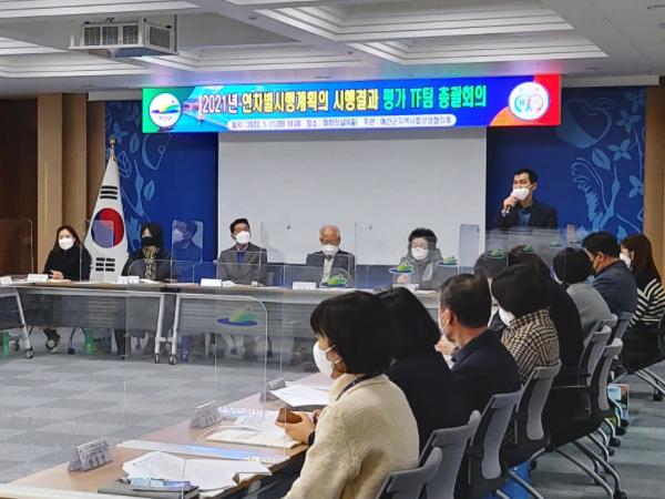 또한 11일 오후에는 대회의실에서 협의체·실무분과 임원, 외부전문가, 공무원 등 30여명이 참석한 가운데 ‘2021년 연차별 지역사회보장계획 시행결과 평가 TF팀 총괄 회의’를 개최했다.