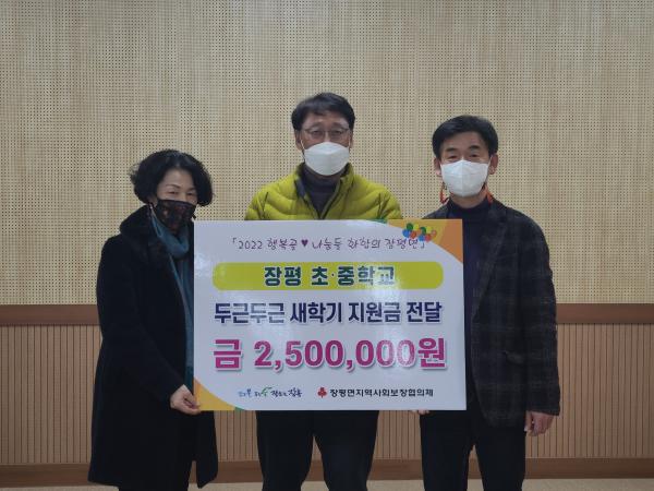 장평면지역사회보장협의체는 지난 11일에 지역인재 육성을 위해 장평면 초등학교, 중학교 졸업생에게 새학기 준비 지원금 250만원을 전달했다.