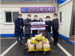 신안군복지재단은 지난 11일, ㈜해표산업에서 어려운 이웃들을 위한‘사랑의 쌀 2,000kg’을 전달받았다고 밝혔다.