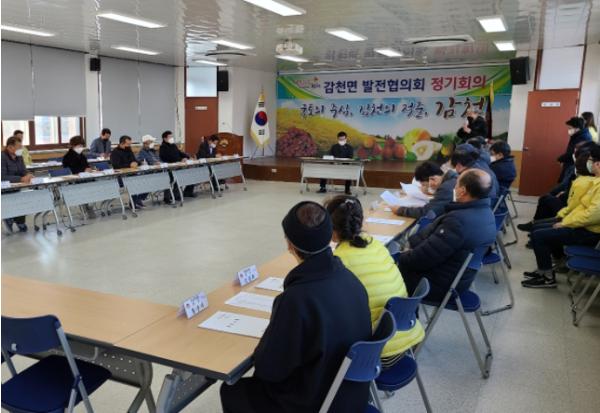 김천시 감천면은 지난 1월 12일 오전 행정복지센터 2층 회의실에서 발전협의회(회장 김종화) 회원 등 40여명이 방역수칙을 준수하여 2022년 첫 정기회의를 개최했다.