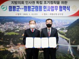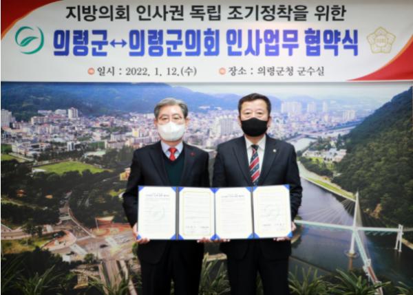 의령군의회는 12일 의령군청 군수실에서 ‘인사운영 등에 관한 협력체계 구축’을 위한 업무협약을 체결했다고 밝혔다.