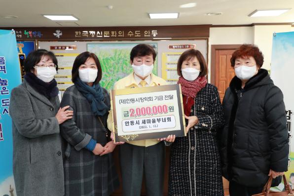 안동시 새마을부녀회(회장 김경란)에서 1월 12일 2백만 원의 장학금을 전달했다. 새마을부녀회에서는 녹색생활화 저공해 재생비누 제작·판매, 헌옷모으기 행사 등의 수익금으로 나눔실천기금을 조성하여 매년 장학금을 기탁하고 있으며, 연말 김장나누기·추석맞이 사랑의 쌀 나누기·농촌일손돕기 등 지역사회를 위한 나눔의 열린 봉사활동도 지속적으로 추진하고 있다. 안동시 새마을부녀회는 2011년부터 매년 장학금을 기탁하여 누적 금액이 2천2백만 원에 이르고 있다.