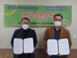 음성군은 지역문화예술 활성화를 위해 음성군문화예술체험촌과 건국대학교 글로컬캠퍼스 디자인대학 조형예술학과와 업무협약을 체결했다고 13일 밝혔다.