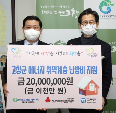 전날(12일)에도 한국수력원자력(주) 한빛원자력본부에서 에너지 취약계층을 위한 난방비 지원을 위한 성금 2000만원을 전달했다.