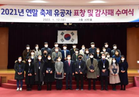 진주시는 12일 시청 2층 시민홀에서 2021년 진주남강유등축제 등 연말 축제 유공자 감사패와 표창장 수여식을 개최했다.