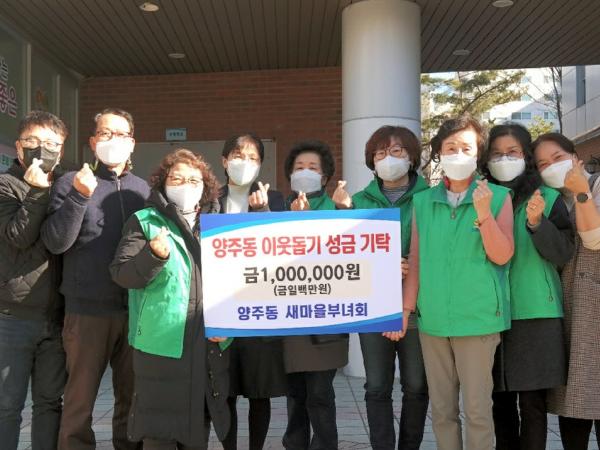양주동 새마을부녀회는 이번 이웃돕기 성금 기탁뿐 아니라 지난해 7월 ‘홀몸어르신 등 취약계층 130세대에 삼계탕 나눔’, 10월 ‘저소득 취약계층 30세대에 김치 지원’, 12월 ‘사랑의 김장담그기 행사 개최’ 등 취약계층 지원을 위한 다양한 활동을 통해 지역내 나눔문화 활성화에 크게 기여해 오고 있다.