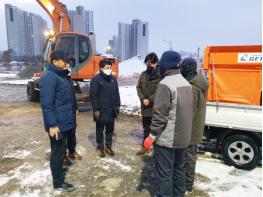 또한, 예천사거리, 롯데캐슬 앞 경사로 등 사고 위험이 큰 주요 도로를 순찰하며 제설작업을 살피기도 했다.