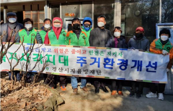 경산시 서부1동 자율방재단은 11일 경산시 옥곡동 소재 독거노인 가정을 방문해 천장 보수, 바람막이 판넬 및 현관 출입문 설치 등 주거환경 개선 봉사활동을 추진했다.