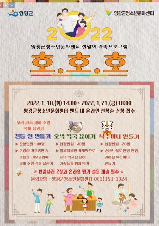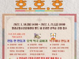 영광군 청소년문화센터는 설 명절을 맞이하여 관내 청소년들이 슬기롭고 뜻깊은 명절을 보낼 수 있도록 비대면 설 명절 프로그램 참가자를 1월 18일부터 1월 21일까지 선착순 모집한다고 밝혔다.