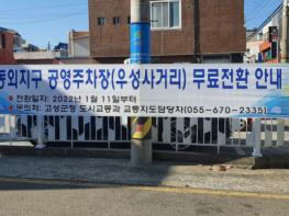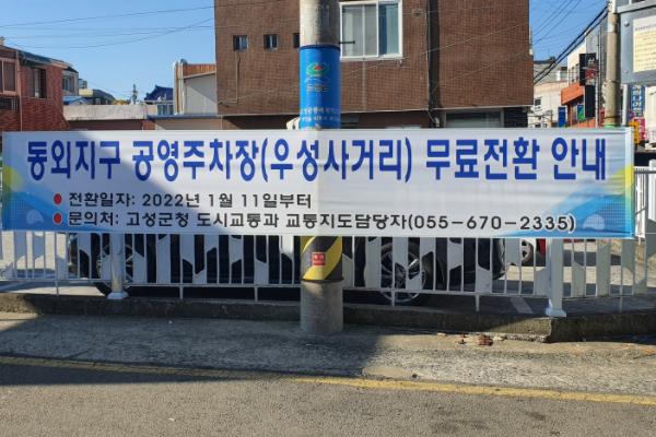 고성군은 민간 위탁으로 유료 운영 중이던 고성읍 동외지구 공영주차장(우성 사거리)을 1월 11일부터 무료 개방한다고 밝혔다.