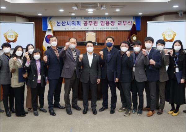 이번 임용장 수여식은 1월 13일 자로 지방의회 소속 공무원의 임용권을 의장에게 부여함에 따라 마련된 자리로, 논산시의회 소속 공무원 6명, 파견 공무원 10명 등 총 16명이 인사권 독립에 따른 첫 임용장을 수여 받았다.