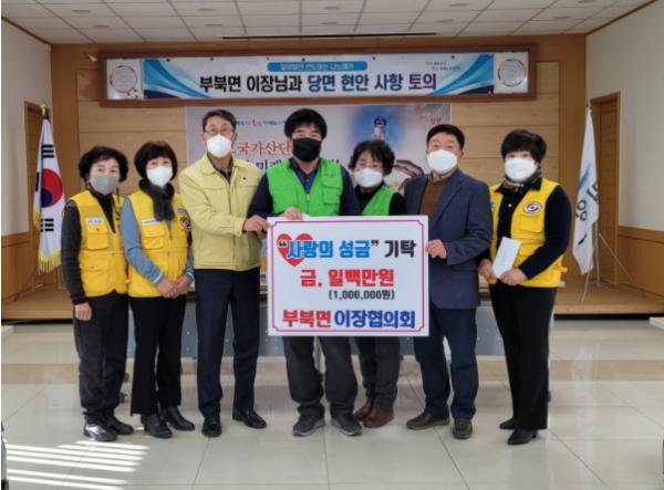 한편, 부북면 이장협의회에서는 지난 해 12월 9일 부북면 자원봉사회에 어려운 이웃들을 위한 성금 100만 원을 기탁했으며 평소에도 관내 환경정화활동, 도로변 풀베기, 취약계층 돌봄 활동 등 이웃사랑 실천을 위한 활발한 활동을 추진하고 있다.