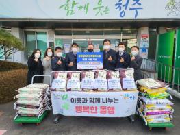 충북경제자유특별도시청은 1월 13일 신임 청장?본부장 등 직원들이 부임 축하의미로 받은 축하미(米) 42포대(10kg 기준)를 오송읍 행정복지센터에 전달했다.