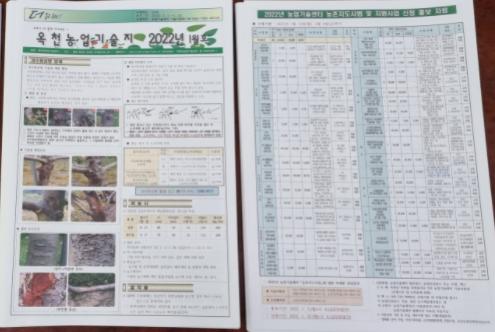 옥천군농업기술센터에서 자체 제작하여 시기별 영농기술을 제공하는 농업기술지가 농업인들에게 호응을 얻고 있다.