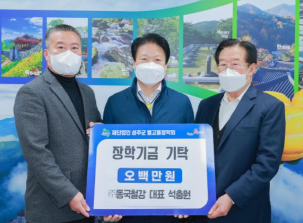 성주군 선남면에 위치하여 스텐레스 철판, 환봉 등을 생산하고 있는 ㈜동국철강은 지역 교육 발전을 위하여 1월 13일 장학금을 기탁하였다.