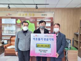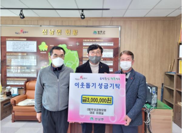 성주군은 이재실(재)우성공원묘원 대표가 1월 13일 선남면사무소를 방문하여 2022년 희망나눔캠페인 성금 300만원을 기탁했다고 밝혔다.