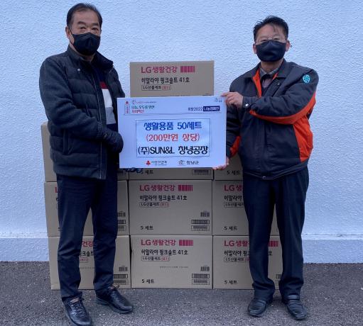 ㈜SUN·L 창녕공장에서는 설날 명절을 앞두고 군내 어려운 이웃을 돕기 위해 비누와 샴푸 등 생활용품 50세트를 마련했으며 기탁 물품은 군내 저소득계층 등 어려운 이웃에 전달할 예정이다.