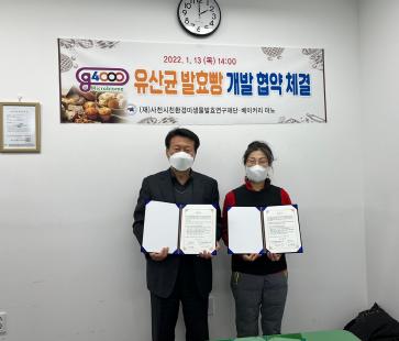 (재)사천시친환경미생물발효연구재단은 지난 7일 베이커리 마노와 미생물재단 종균을 활용한 천연발효빵 개발을 위한 업무협약을 체결했다고 14일 밝혔다.