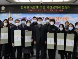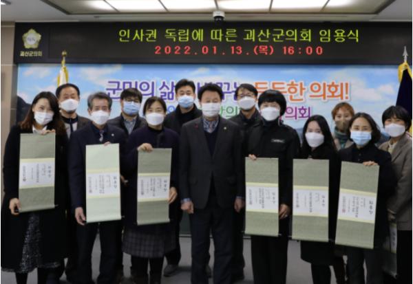 괴산군의회는 지난 13일 의회 소회의실에서 ‘괴산군의회 공무원 임용장 수여식’을 개최했다.