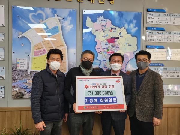 자성회는 자인면 지역의 발전을 위해 다방면으로 힘쓰는 출향인 모임으로 꾸준히 이웃돕기 성금 모금에 동참하며 희망 나눔에 앞장서 왔다. 김성우 회장은 “작은 정성이지만 소외된 이웃들의 마음에도 새해의 희망이 깃들기를 바란다.”고 말했다.
