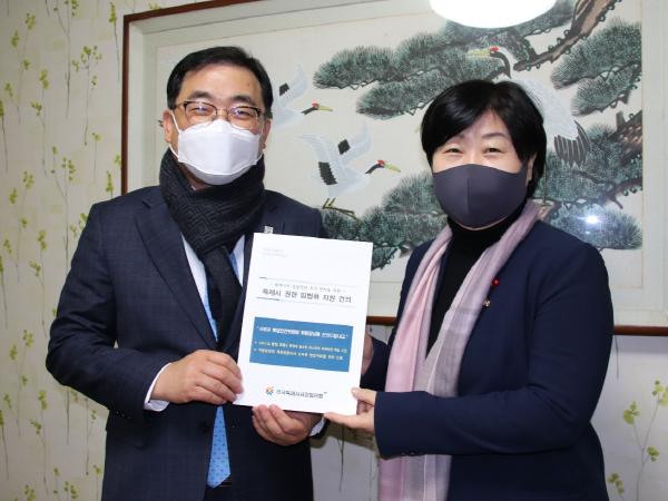 이날 면담 자리에서 허 시장은 서영교 위원장에게 현재 국회 행안위 제1소위원회에 상정돼 심의 중인 '지방자치분권 및 지방행정체제개편에 관한 특별법(약칭 지방분권법)' 개정안의 조속한 처리를 요청했다.