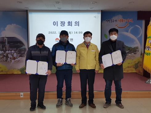 주요 현안사항으로 2022년 새 해 각종 지원사업과 시정 및 면정 주요 사항을 전달하고, 신임 이장들의 인사와 현안 사항에 대한 논의를 하며 소통의 시간을 가졌다.