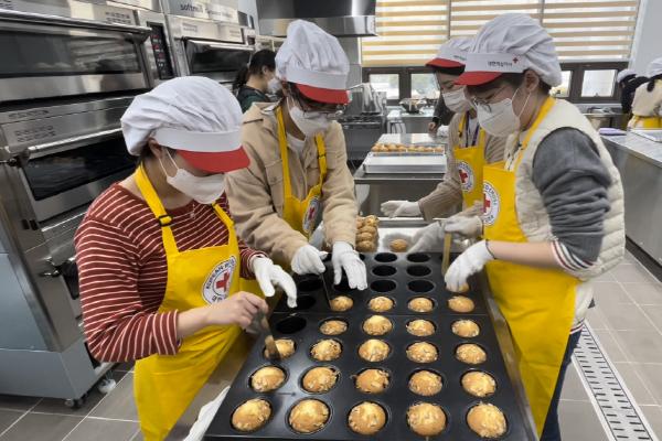 봉사활동은 지난해 12월 개소한 대한적십자사 충남지사 희망나눔플랫폼에서 쿠키 200개와 머핀 250개 두 종류의 빵 만들기 체험으로 진행했다.